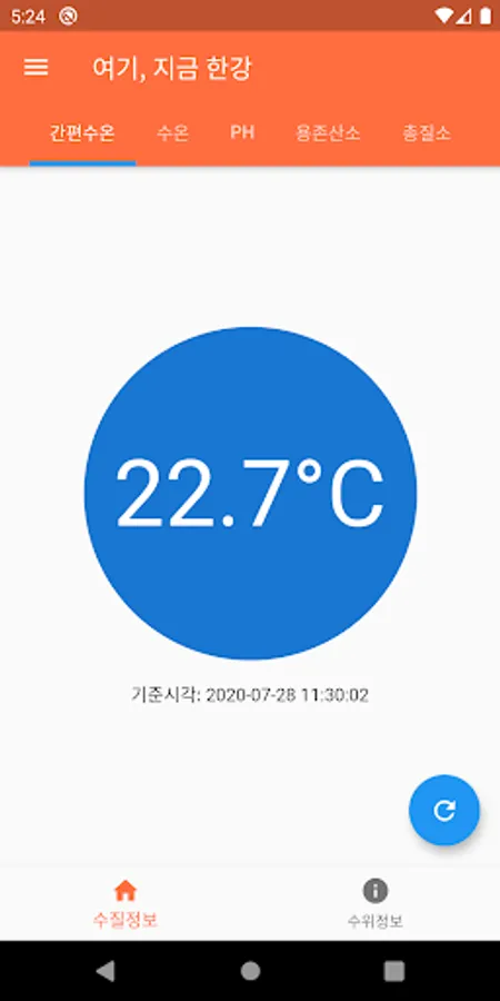 It is an application that can check the water temperature, water quality and water level in the Han River.