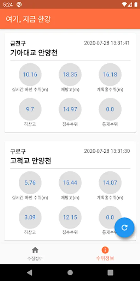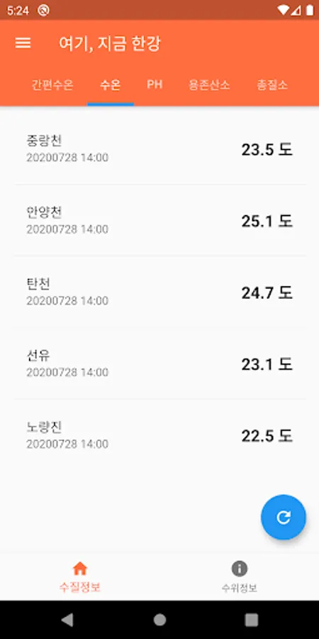 여기, 지금 한강 - 한강 수온(온도), 한강 수질, Screenshots