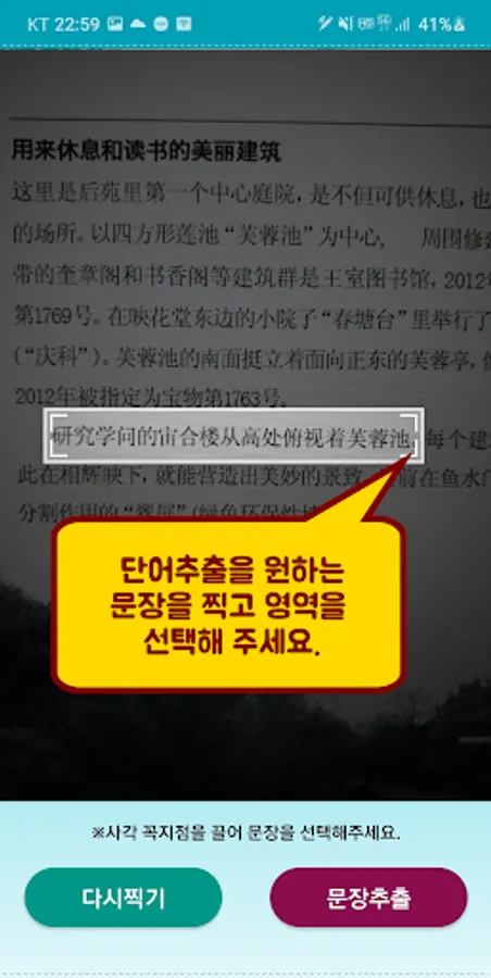 ① Take the entire sentence containing words that need translation or dictionary search.