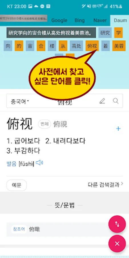 ③ If there is a Chinese word that requires dictionary search, click the word.