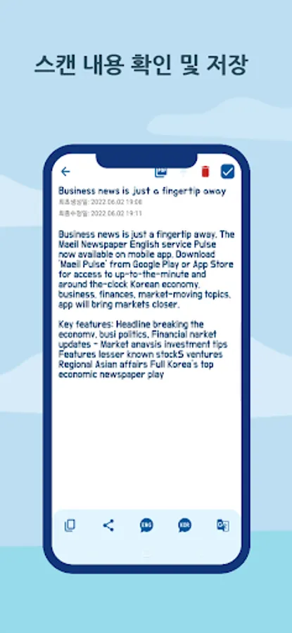 - Check the scanned text, correct the necessary parts and save it. Tap the translate button if you need an English translation! Please.