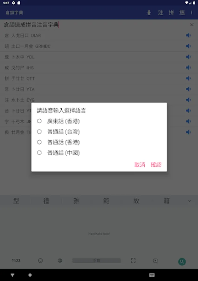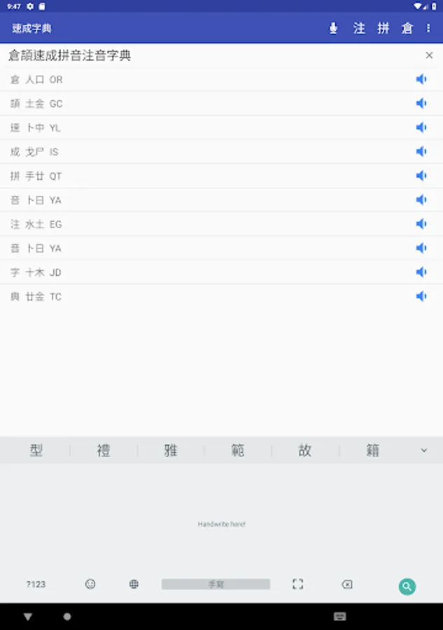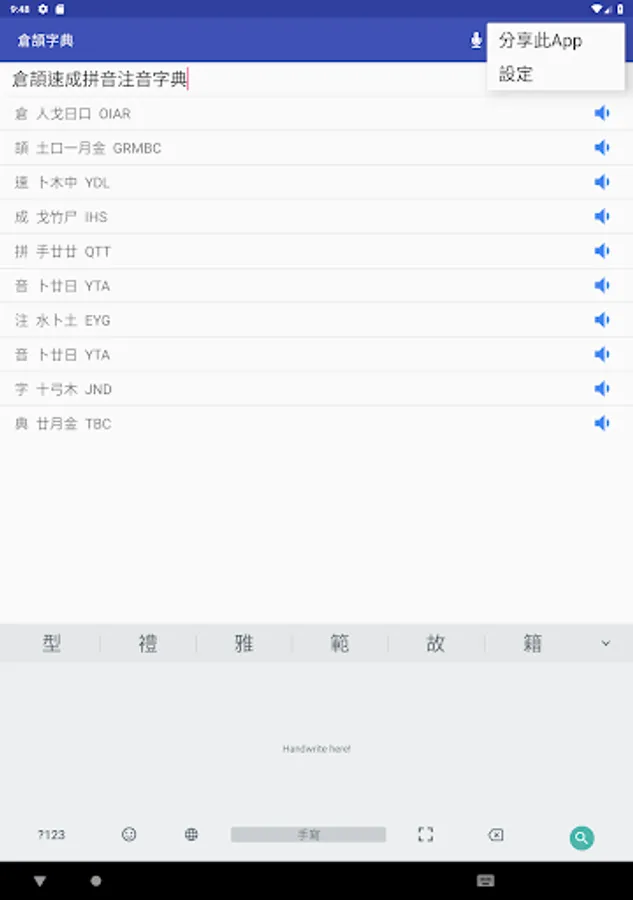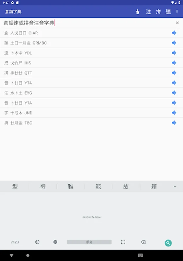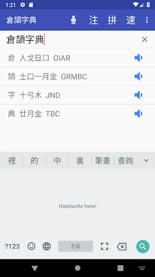 Cangjie Dictionary is designed for a group of novice users who learn Cangjie. Users only need to input the word you want to query, and the Cangjie code or quick code of that word can be listed automatically.