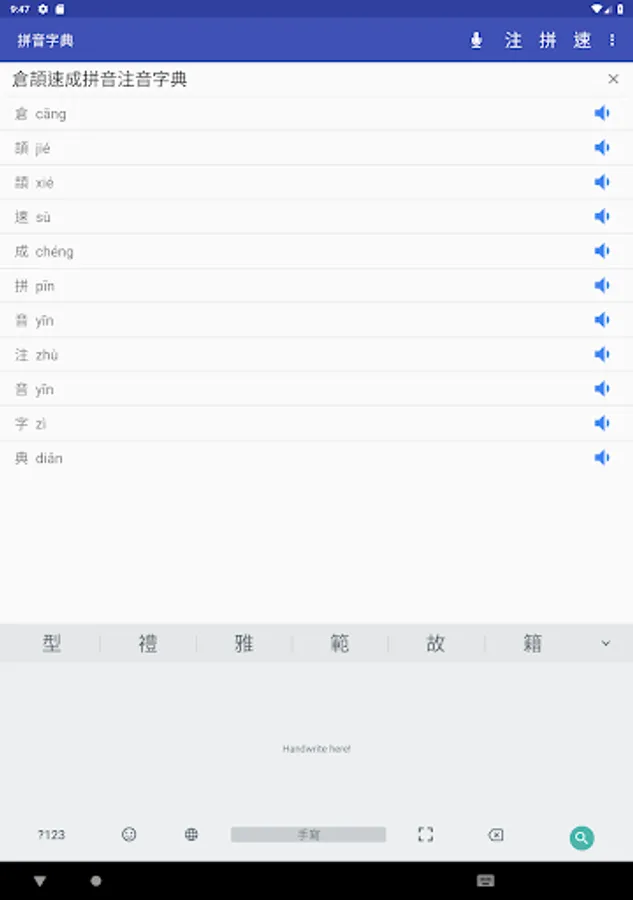 In today's society, the demand for Mandarin (bopomofo) is increasing. Whether it is at work, educating children, or sometimes returning to work in the Mainland, sometimes they will always test themselves with the "half-integrated" Mandarin. In view of this, we have written a Mandarin Pinyin dictionary, hoping to help everyone, such as work in the Mainland suddenly need to type, children ask homework, daily life, self-study exam, foreigners learn Chinese, training, Mandarin test, improve Mandarin level, You can also use this app to quickly find bo po mo fo tones and even pronunciation exercises.