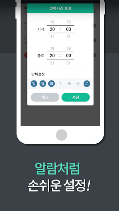 - Repeat function allows you to specify a limit start time and end time, repeat days.