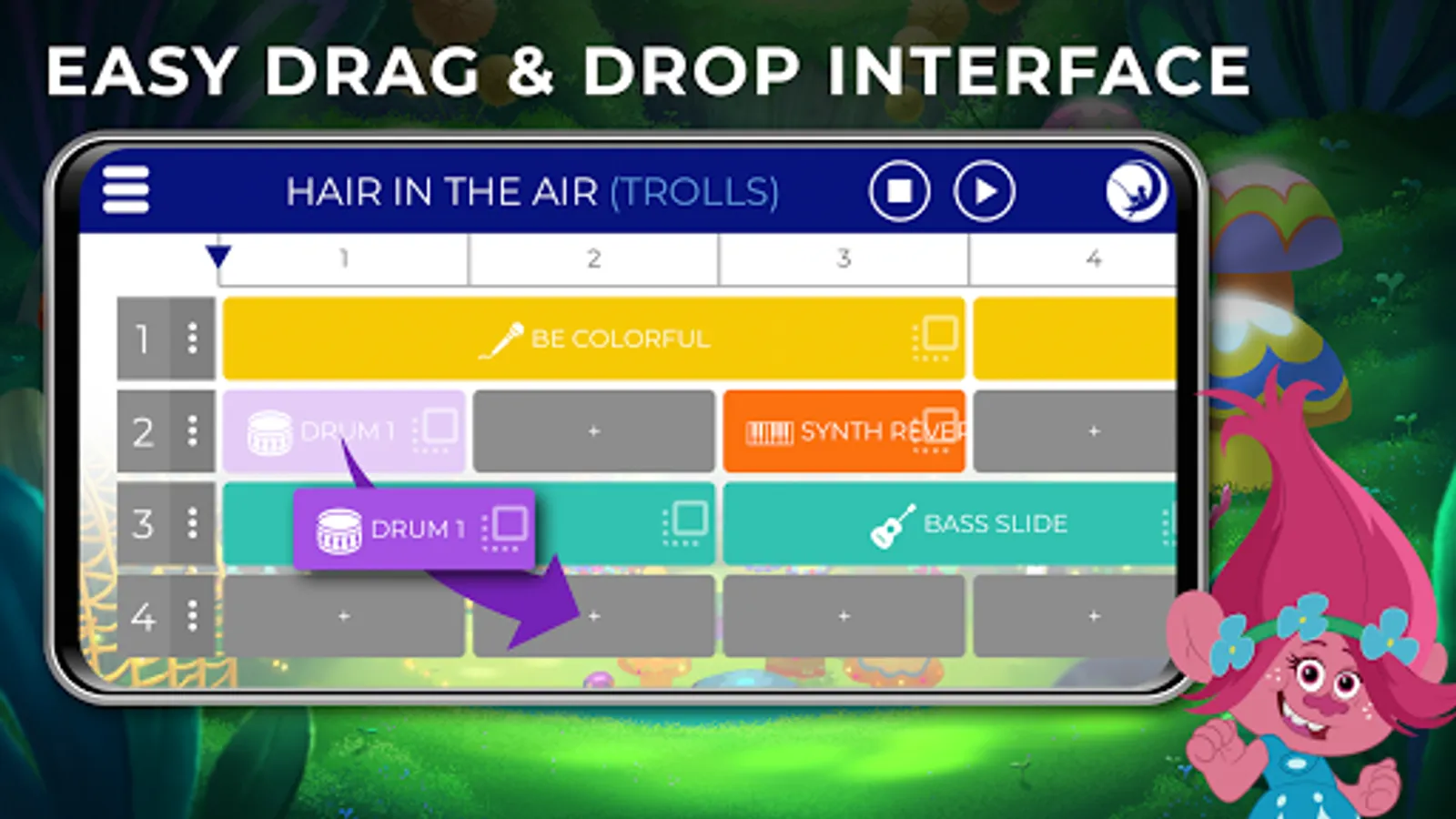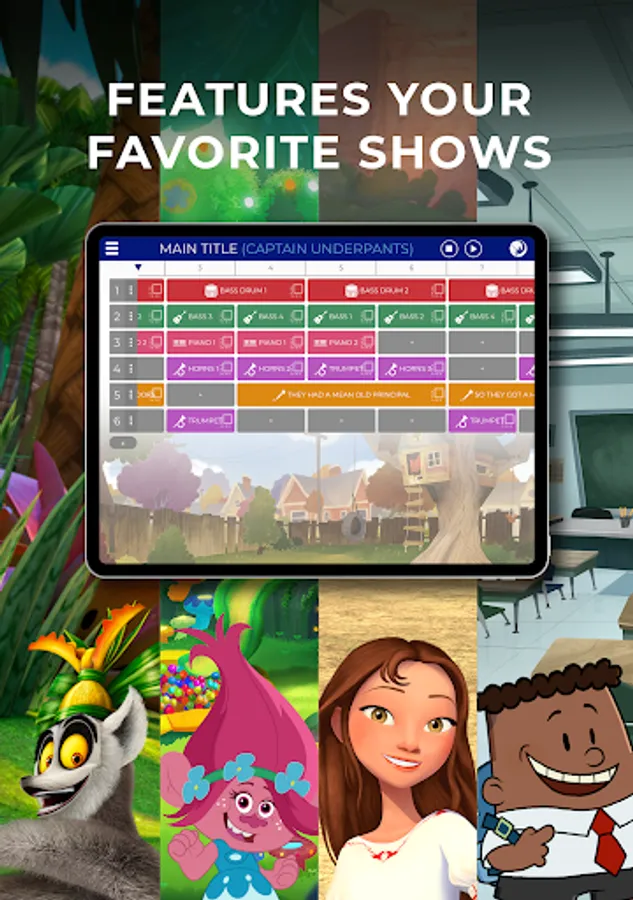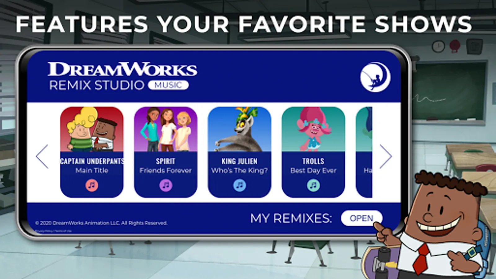 The music loops are pulled from the original tracks of hit songs from DreamWorks shows like Trolls: The Beat Goes On, All Hail King Julien, Spirit Riding Free, and The Epic Tales of Captain Underpants.
