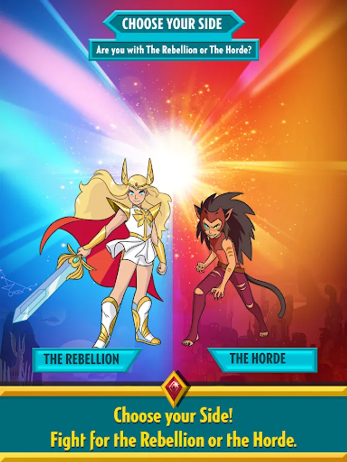 CHOOSE YOUR SIDE! Join SHE-RA and THE REBELLION or CATRA and THE HORDE