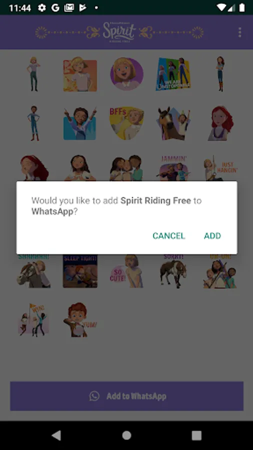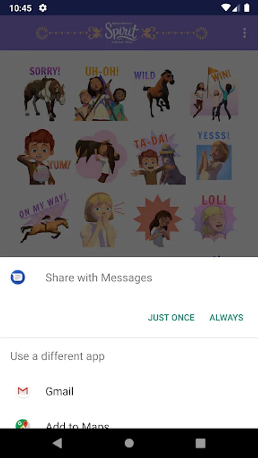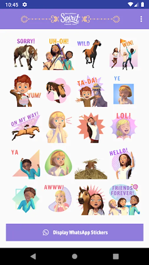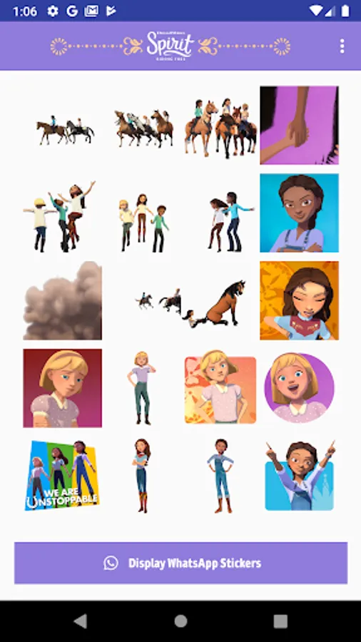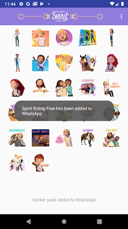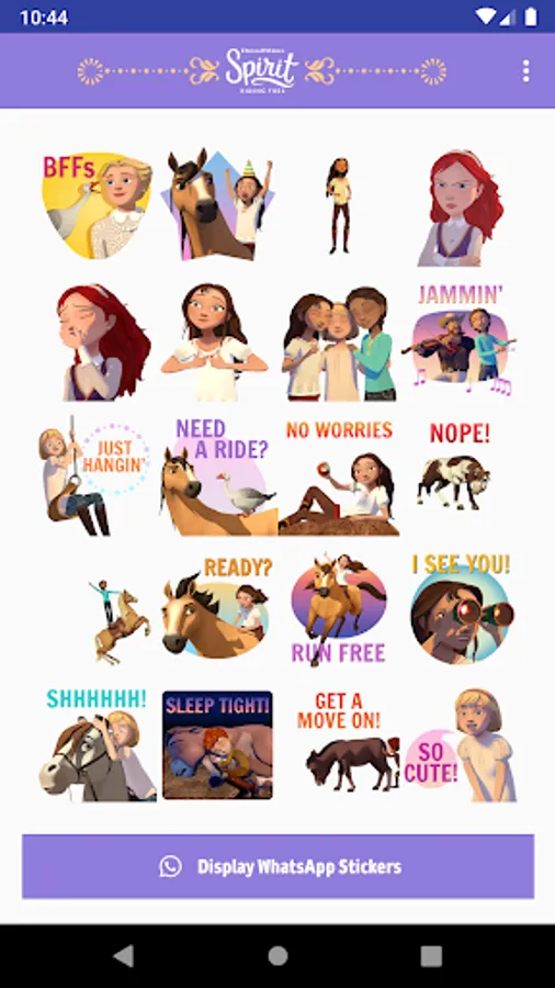 These cute images of your favorite Spirit Riding Free characters (like Lucky, Abigail and Pru) make it even more fun to keep in touch. Tell your BFFs how you’re doing. Let them know you’re on your way. Or just say thank you. These dynamic stickers leave emojis in the dust. Also works in WhatsApp!