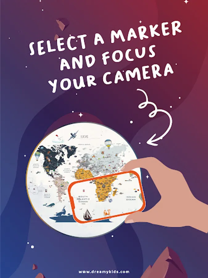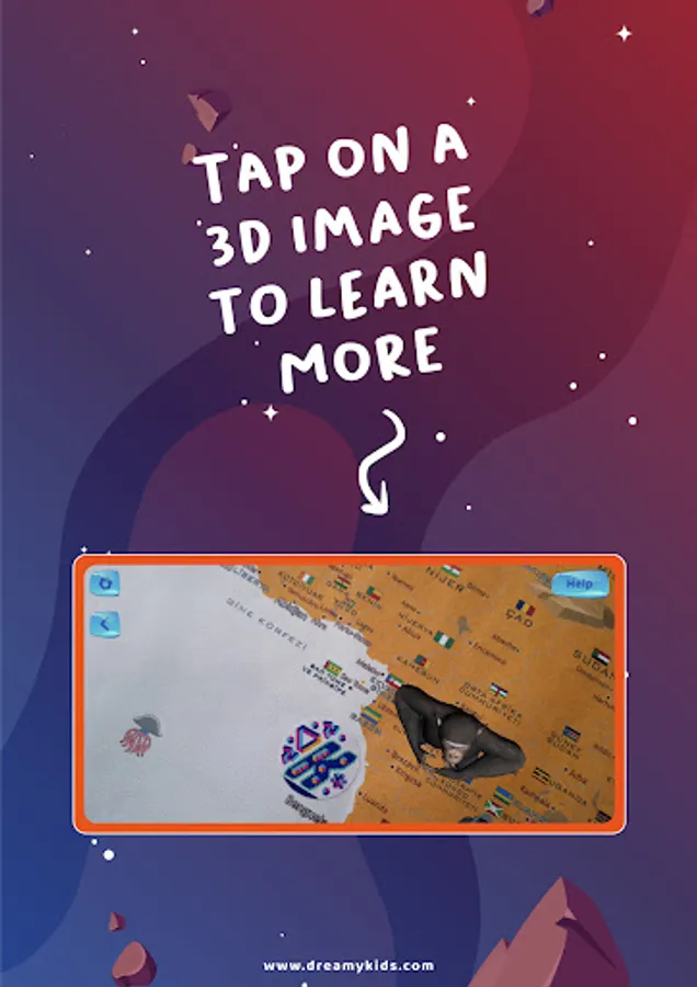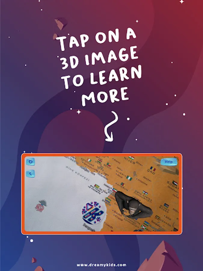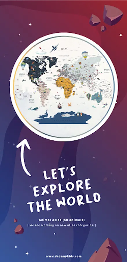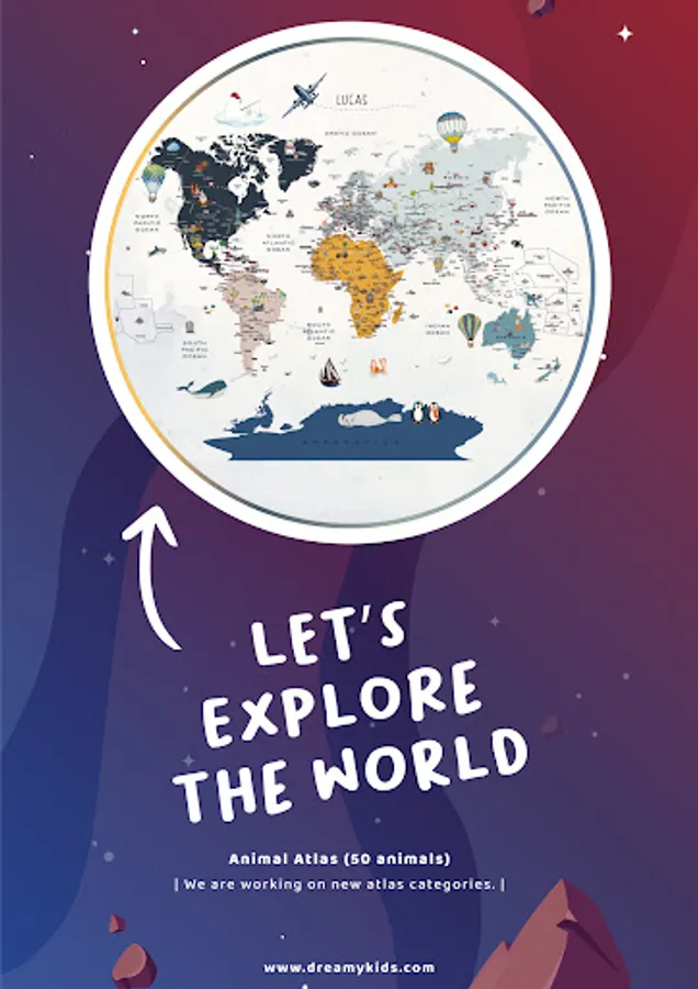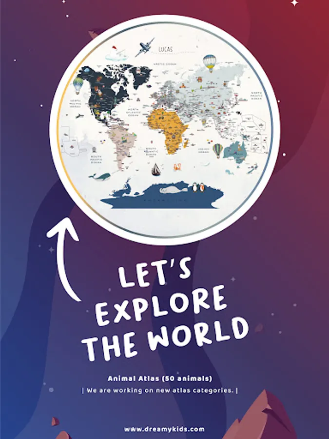 Scan the stickers on your Dreamy Kids world map with the Cosmuu app and explore the animal atlas in 3D with detailed information. Animal atlas only for now, other atlases will be here soon!