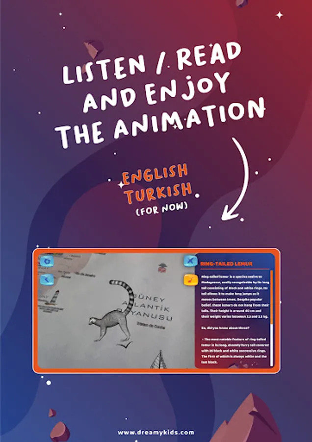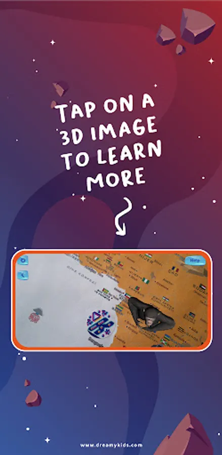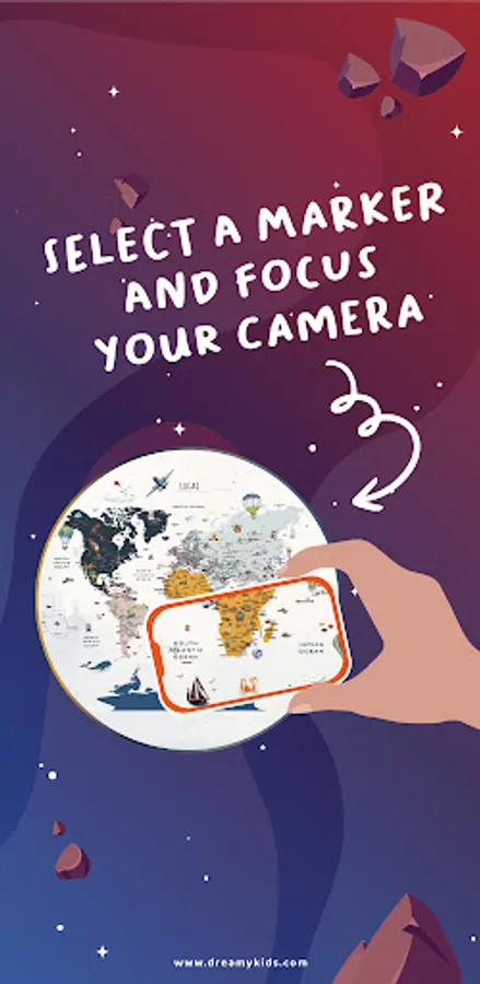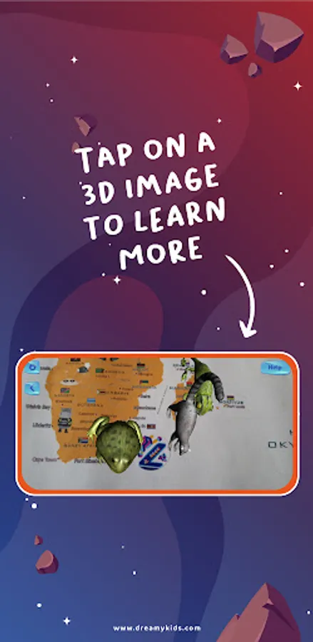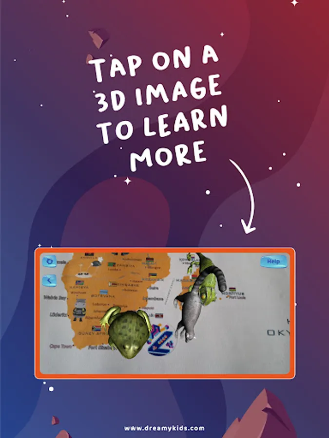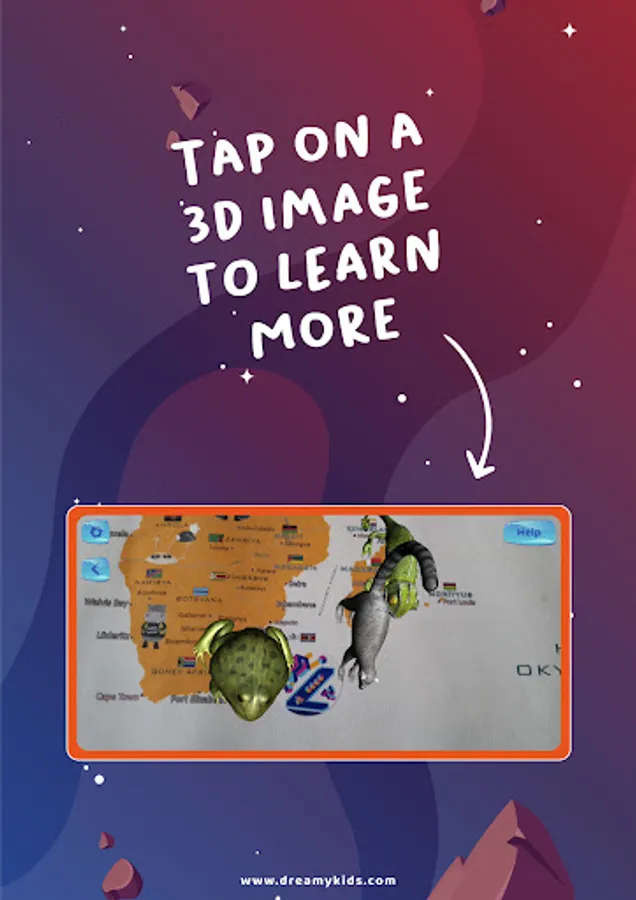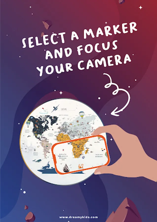 Scan the stickers on your Dreamy Kids world map with the Cosmuu app and explore the animal atlas in 3D with detailed information. Animal atlas only for now, other atlases will be here soon!