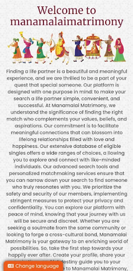 Are you searching for a life partner who shares your values, interests, and aspirations? Look no further! Manamalai is here to help you connect with like-minded individuals and emabark on the journey of a lifetime together.