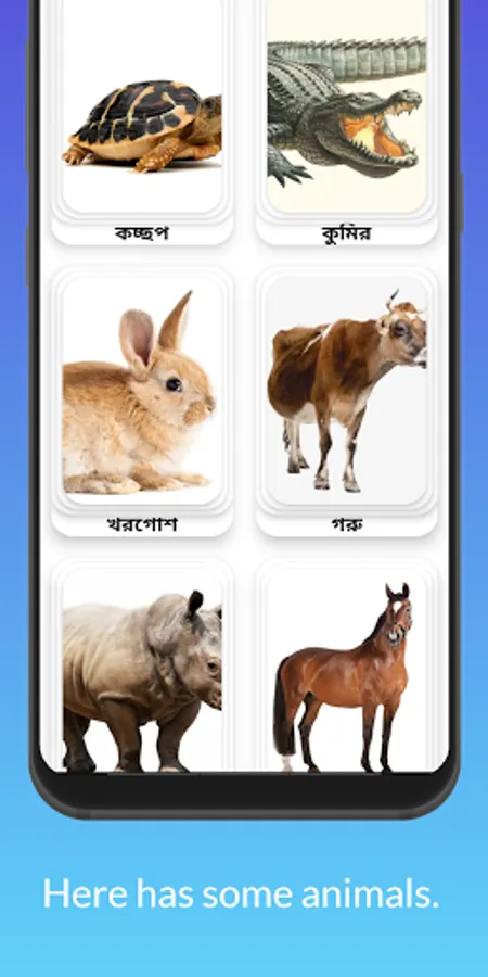 In this app we read every subject for children at all levels of your affection such as counting from one to ten for numbers, Bengali vowels, Bengali consonants, all flower names, all fruit names, animal names, fish names, bird names, Arabic letters, English capital letters Attempts have been made to teach short handwriting, including writing, in a simpler way. Which your darling children can read in English and Bengali. Just by clicking on such an image, the name of the object of the image can be heard.