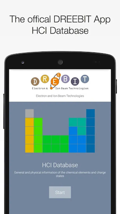 The DREEBIT HCI Database app provides information about the ionisation energy of highly charged ions. The lists of elements and possible charge states can be filtered by typing in the input field.