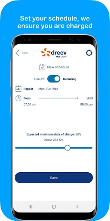 Thanks to our app, configure your mobility needs, track the state of charge of your vehicles in real time when they are connected to the V2G charging station and take control of your charge at any moment.