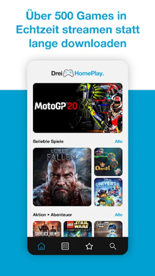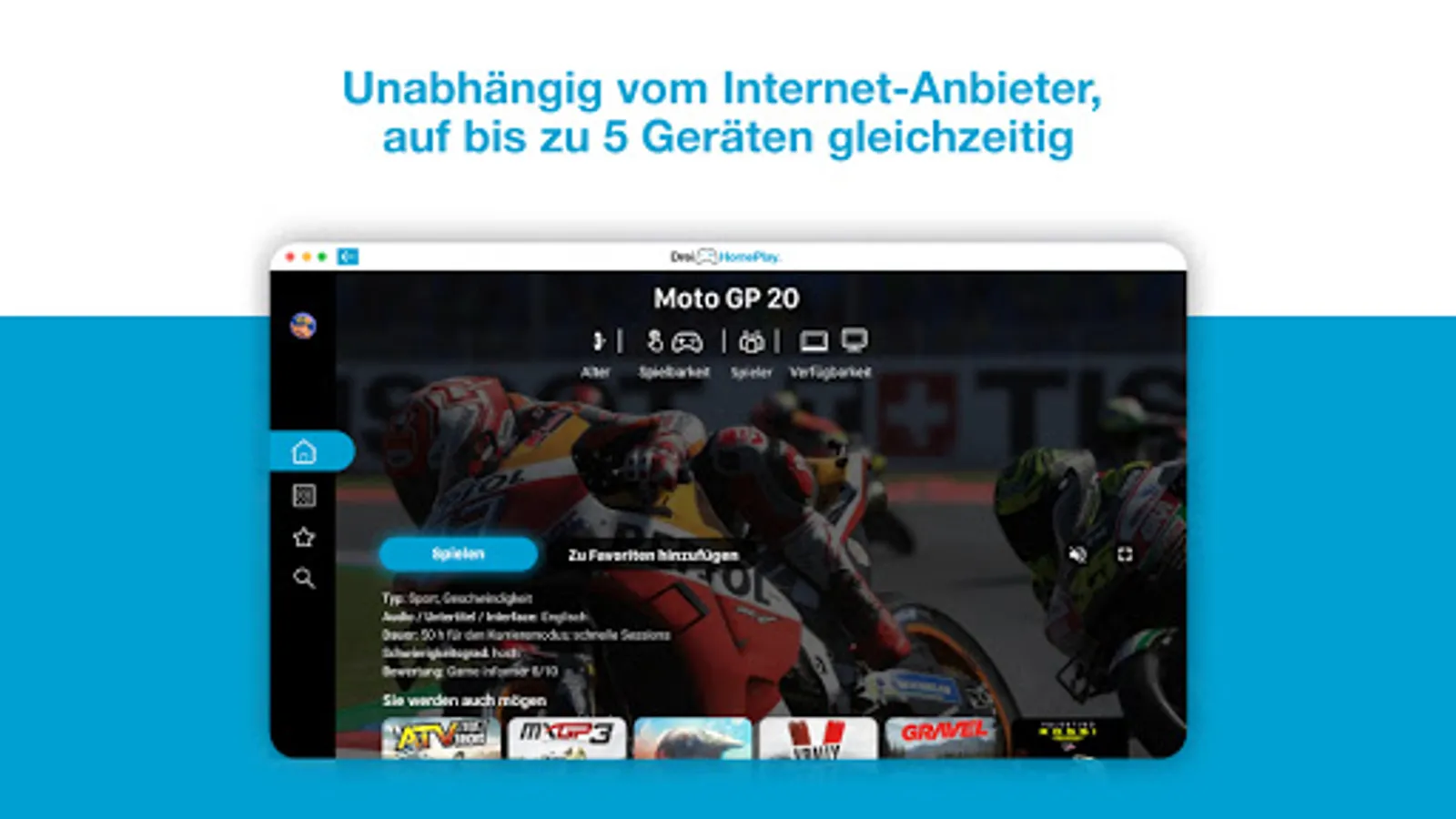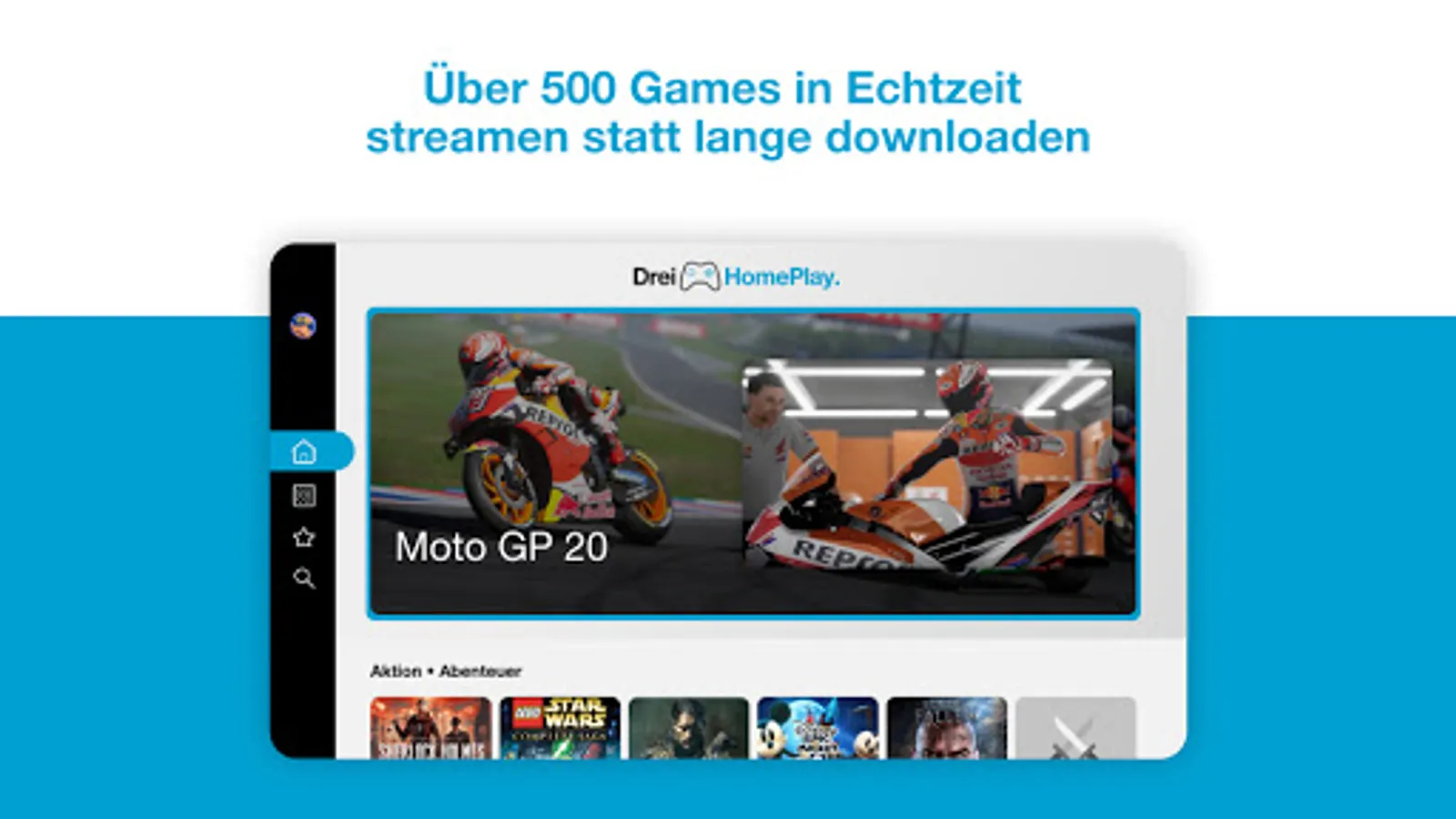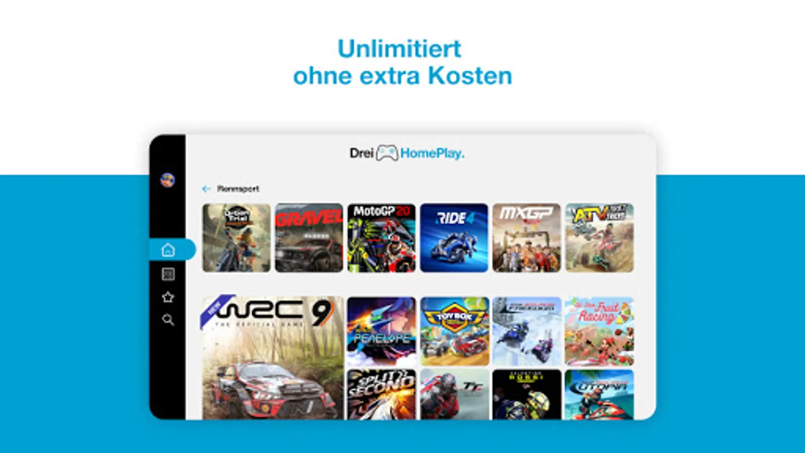 With Drei HomePlay, cloud gaming is moving in with you: you can stream unlimited more than 500 games in real time over the Internet without having to download them to your device. At a monthly fixed price without commitment!