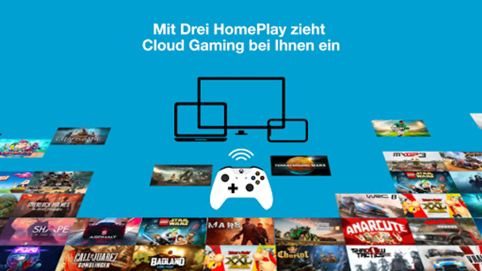 Stream your favorite games with Drei HomePlay regardless of the Internet provider, with all fixed and mobile access throughout Austria, via LAN or WLAN and on up to 5 devices at the same time.