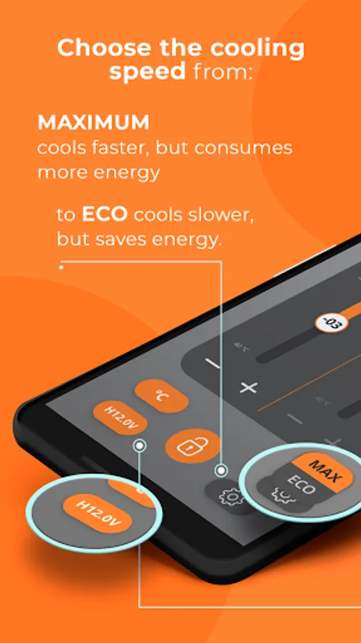 - Choose the cooling speed from Maximum (cools faster, but consumes more energy) to Eco (cools slower, but saves energy).