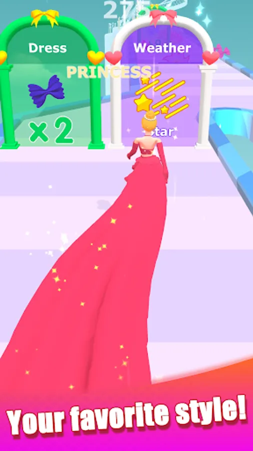 Become the dress princess, avoid obstacles and finish the fashion runway. Get super long dress to the rhythm of music.