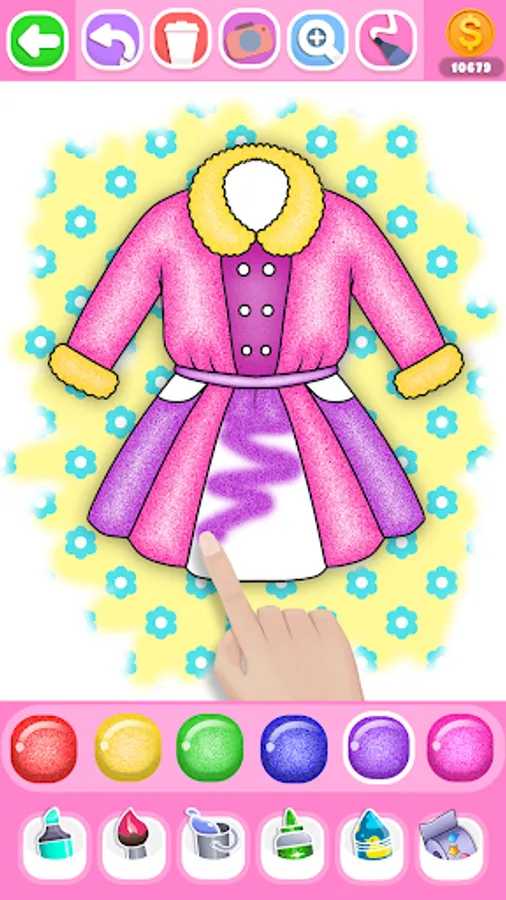 - Glitter Coloring Book With glitter - Dresses Game for girls is very easy to use!
