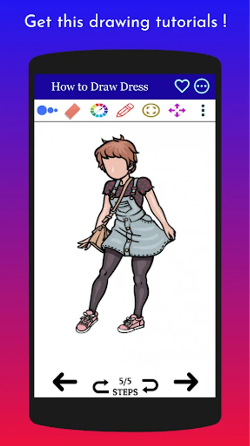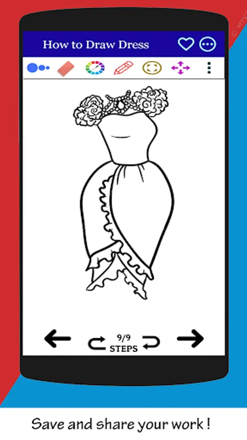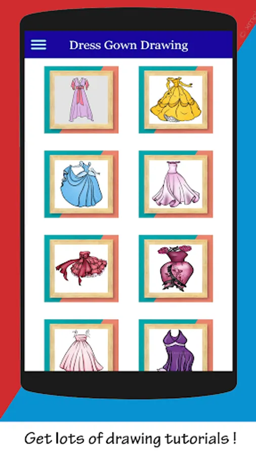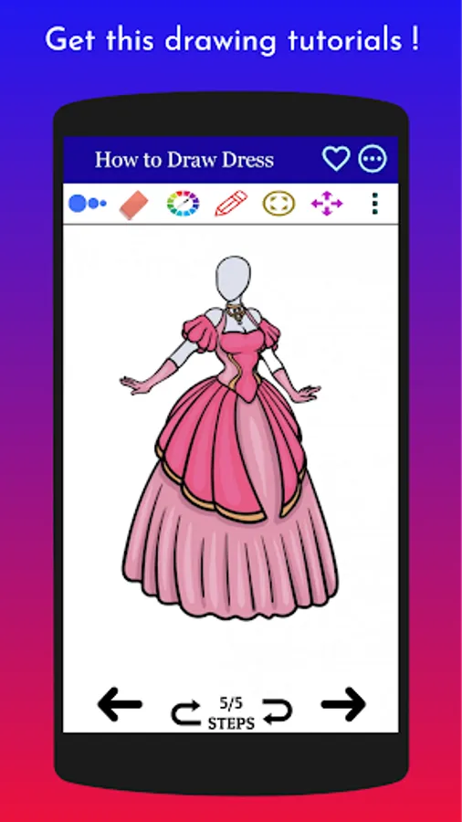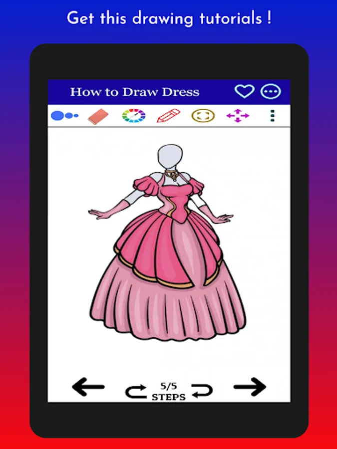 Our dress design drawing tutorial apps for beginner specially designed for those who want to learn to draw, improve their drawing skills, their creativity and their imagination. It’s amazing to change your level of drawings to the high level with a lot of simple gown drawing as an inspiration drawing for every age with much cute stuff to draw.