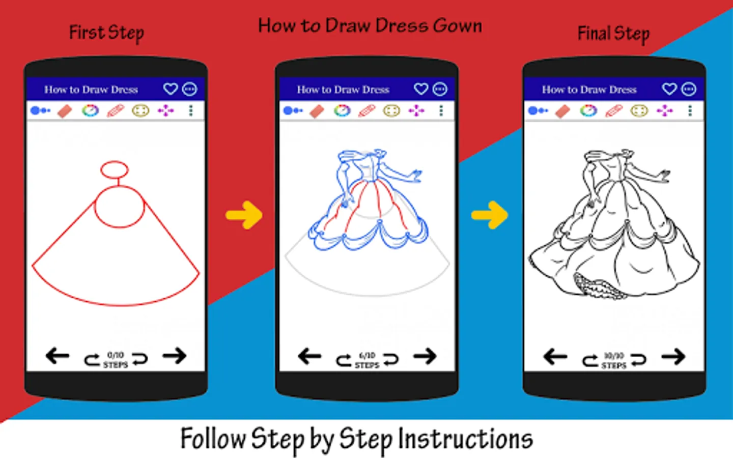 So, what are you waiting for? Download and install our dress drawing tutorials and then learn how to draw properly right on your smart phone for free. The best dress and gown drawing that you want to draw is already waiting for you. Get your paper and pencils ready and start learning how to draw dress step by step.