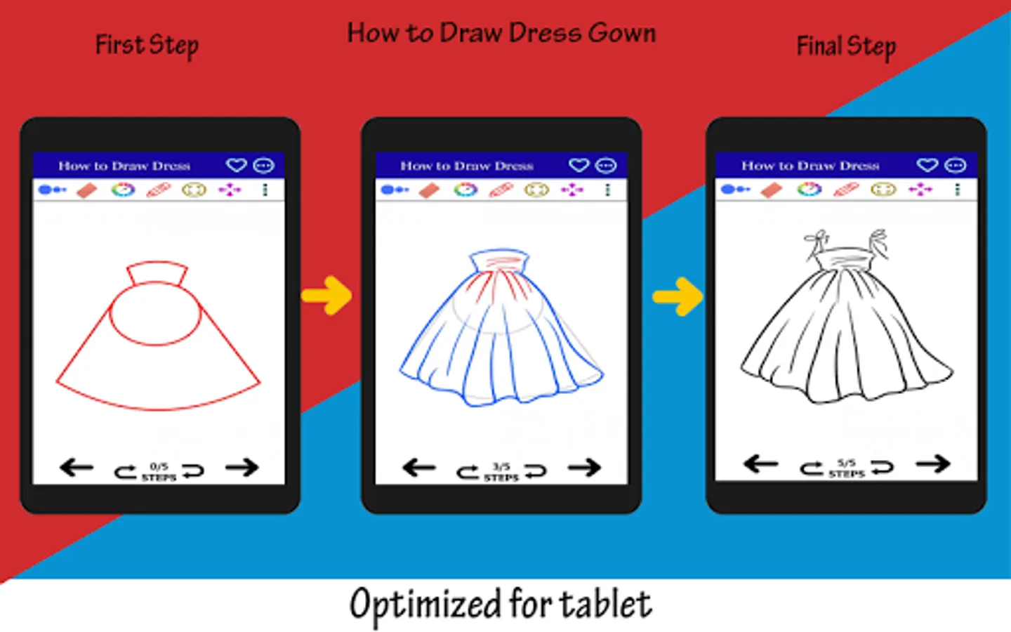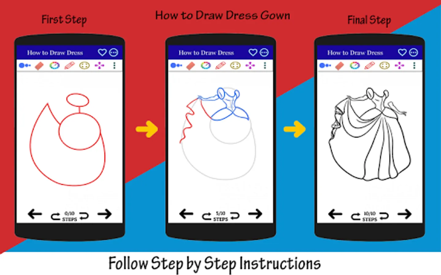 Learning how to draw dress is easier than you think. All you need are a few basic supplies, your imagination, and some patience. Our simple dress drawing tutorial apps can help you get started to sketch dress with these simple lessons.