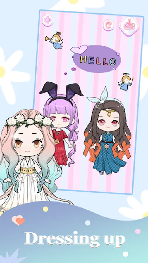 🎨Massive collocations:a lot of colorful clothes, skin tones, hairstyles and hair colors, headdresses, exquisite wings✨, girly heart bags, are all attractive, which will satisfy your cute dressup wishes!