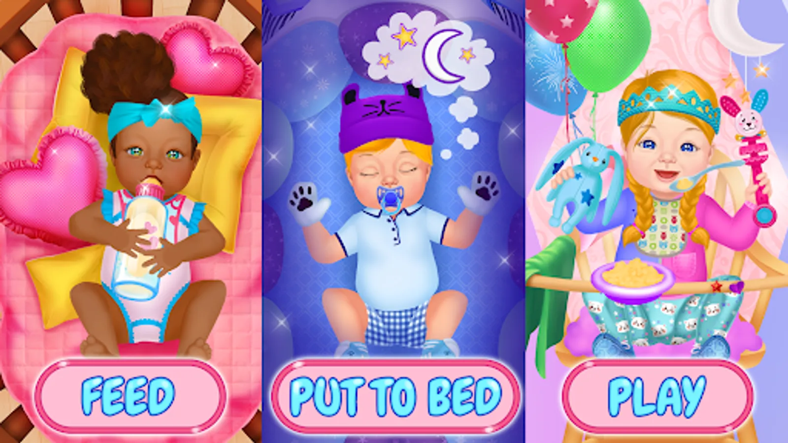 Become a babysitter for a sweet baby girl or boy. In cute baby games for girls taking care of babies is so fun! Best baby care chores: dress up kids, change diapers, feed and lull them to sleep. Each infant baby doll is unique and so lively – it can laugh, cry and react to all interactions. Change its hair and facial features, select clothes for different occasions and take care of its needs 👶🍼