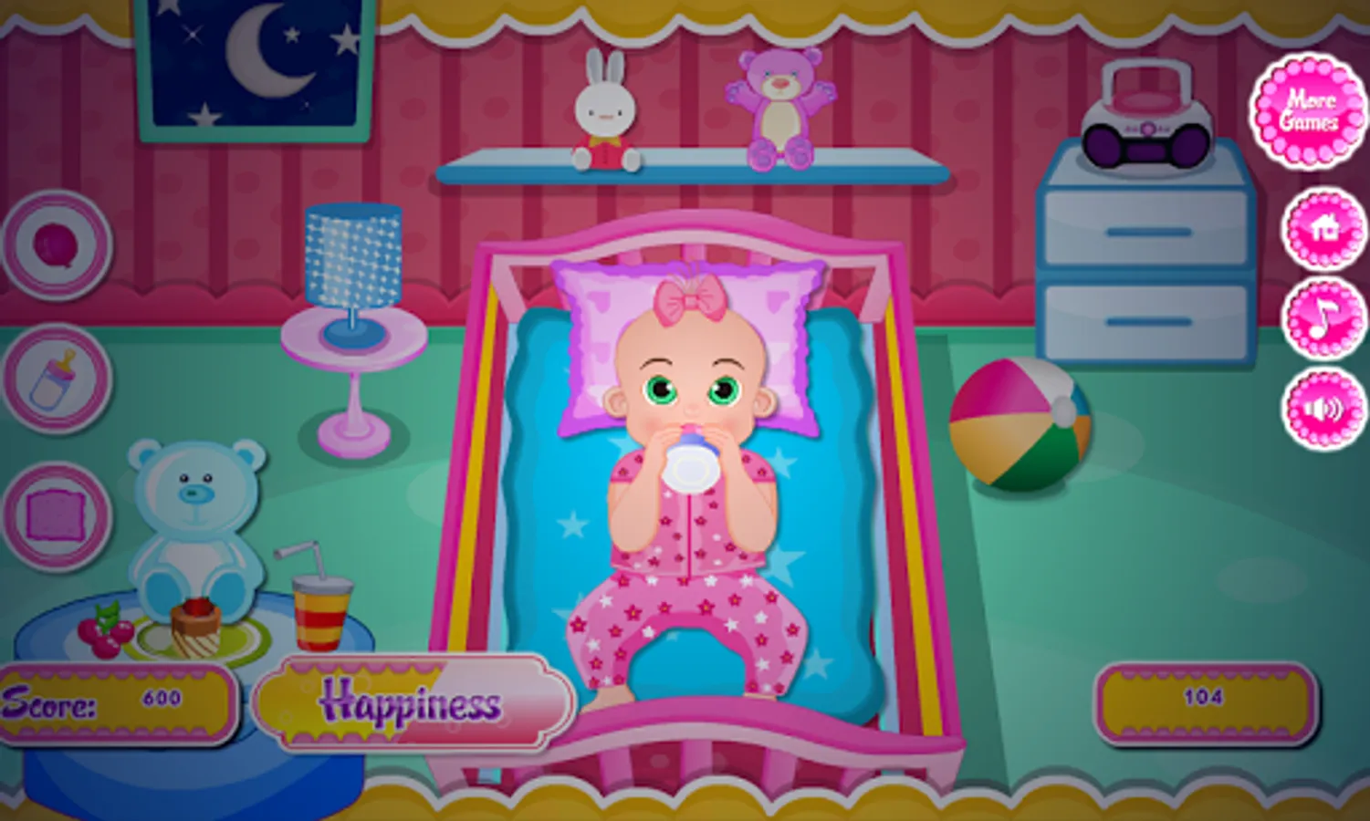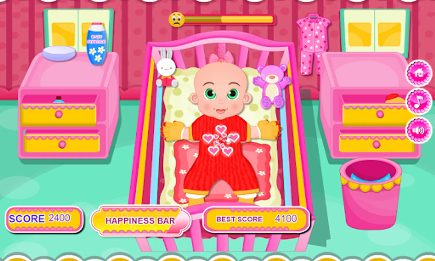 Caring for a baby can be a challenging and fun experience, and with the Baby Emily Care Day game you can see just what it's like to look after a lovely little baby and make her happy. Here you have two modes of play including Free Mode and Play Mode! Your goal is to keep your baby happy so you get to clean and change her, feed her by cooking her some breakfast, play with her, put her to sleep, feed her and give her a drink before playing with her at the park. Once you are back from the park you can give her a bath with the baby shower and have fun washing her! After she is clean you can put her to sleep again in her own bed! With this baby care game you can have plenty of fun and look after your very own little bundle of joy!