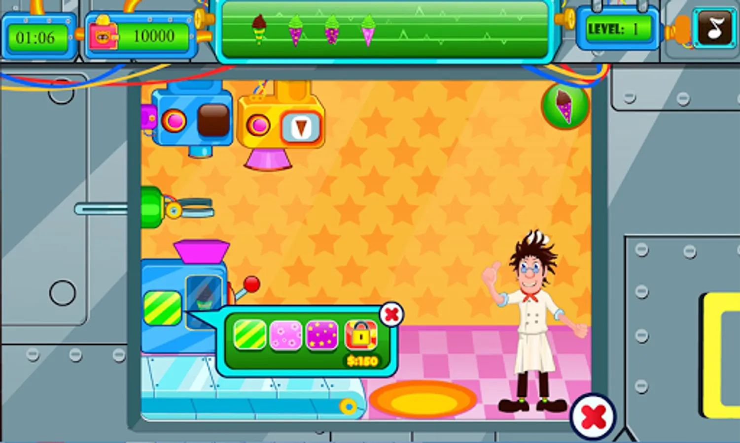 Making ice cream can be lots of fun and why not use your very own candy fabric factory to make it with this cooking game! This time management game is lots of fun and allows you to make ice cream and candy as you work your way through completing the levels. All you have to do is race against the time to create your customers orders by matching them with the orders in the order box! Once you have completed your orders successfully you can easily move up in the levels until you are pumping out your ice cream for all your new and exciting customers to enjoy. With so much fun to be had, you can get creative today and make all the ice cream and candies with this free cooking game!