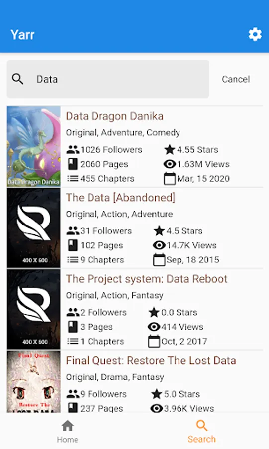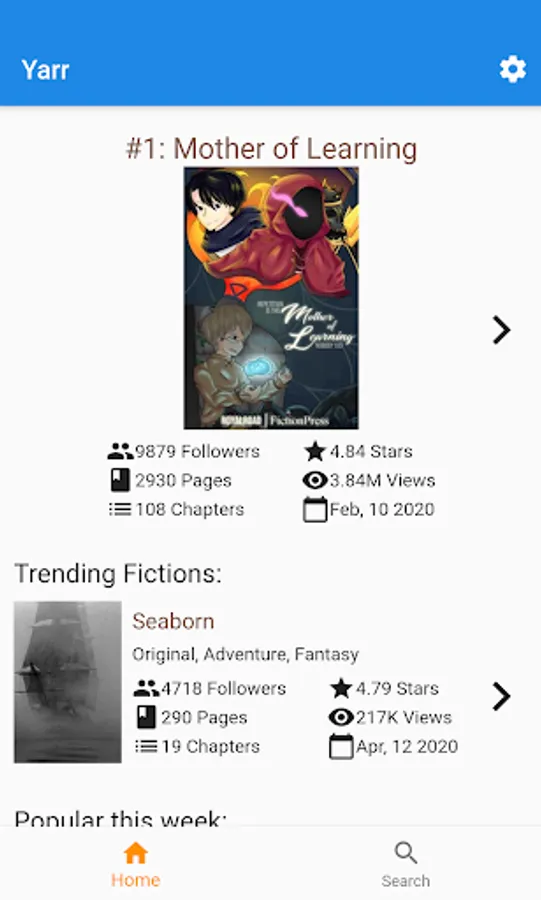 * Browse the top trending, most popular, and highest rated fictions