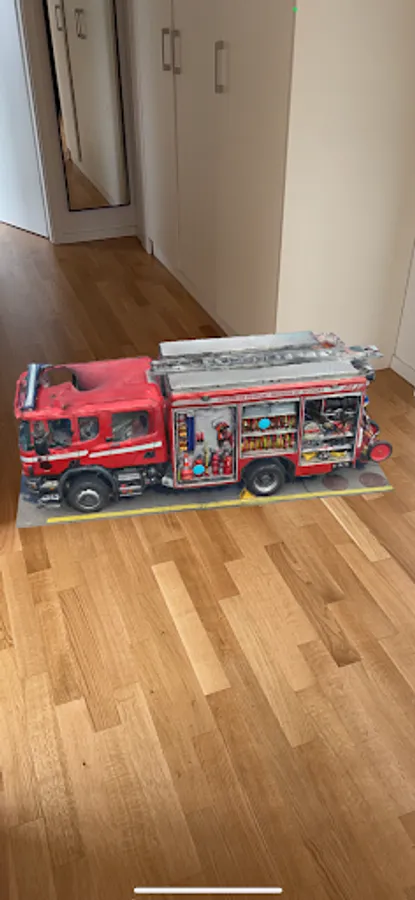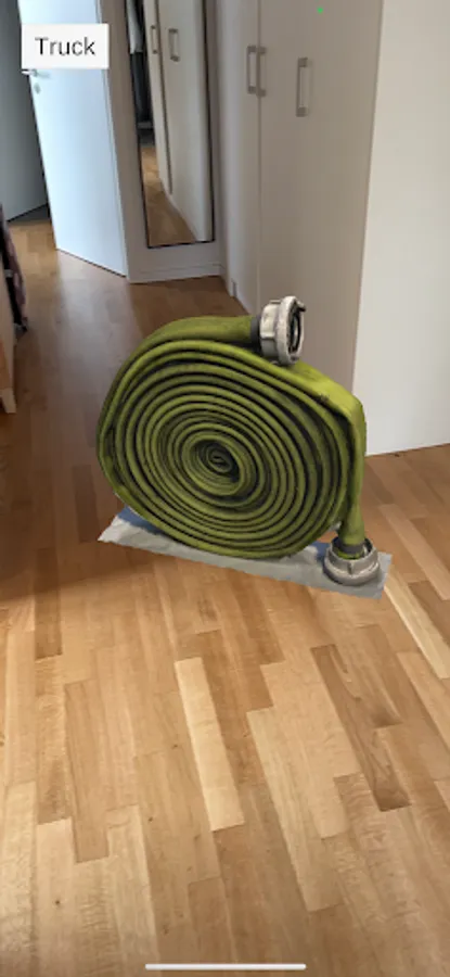 An app to display equipment and vehicles of firefighters in your own home. Scan a surface and place the truck in front of you. Click on a tool to learn more about it.