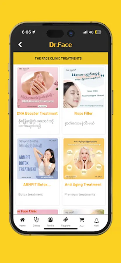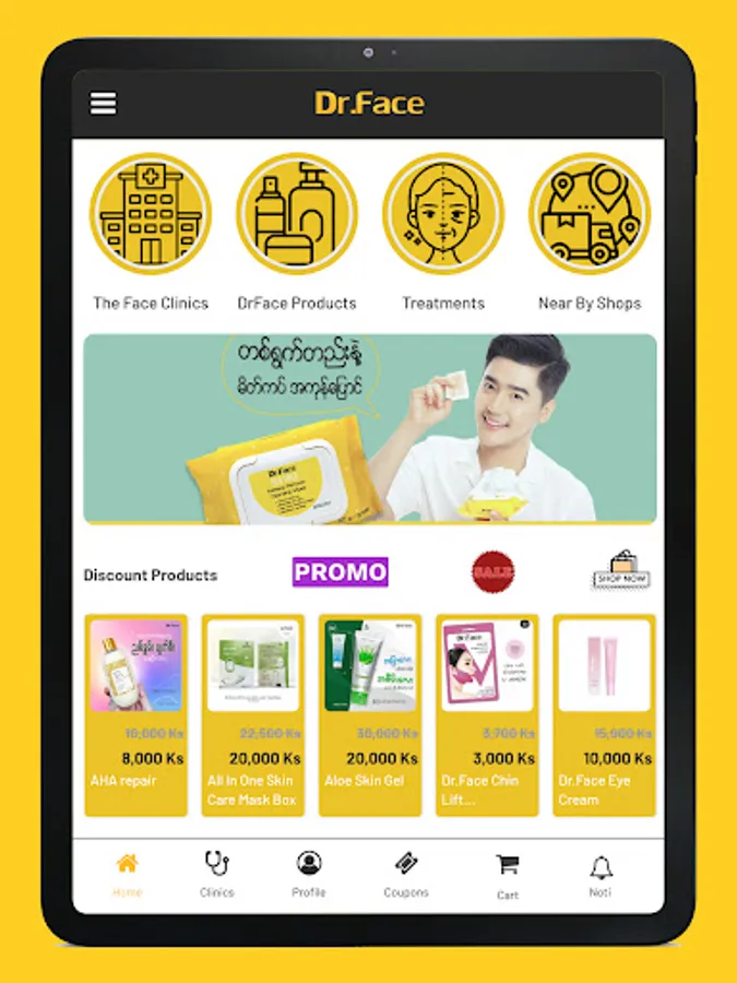 In DrFace app, you can buy DrFace Skin Care products, browsing available treatments from The Face clinics, collection points and reuse at clinics, looking for nearby DrFace product shops, booking for appointments and many more.