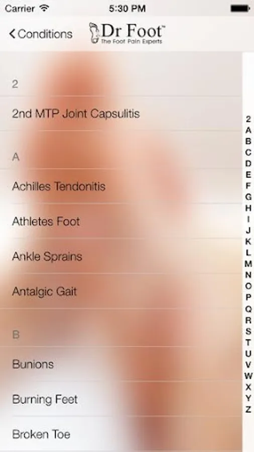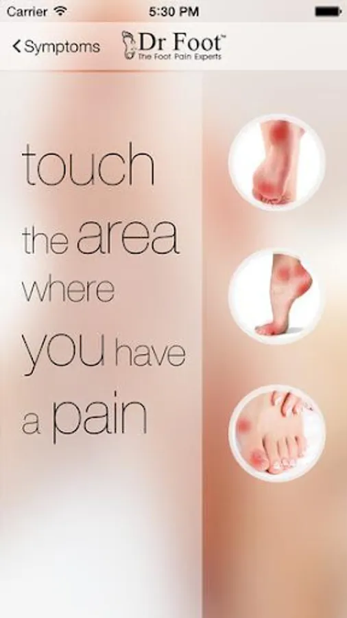 OUCH! Your foot hurts and you don’t know why? Well you need to diagnose your foot condition before you can treat the pain fast! The Dr Foot’s Foot Pain Identifier is what you need. Simply point on the part of the foot that hurts and tap, you will be presented with a list of possible conditions. Taping further will provide a summary of the foot condition together with treatment options to stop your foot pain quickly and easily! A list of foot conditions is also available to choose the appropriate condition.