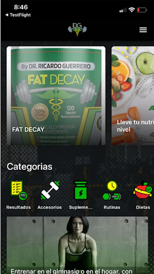 With the DRG Training Program you can have access to routines in Spanish or English, adapted for each gender (man or woman), decide if you exercise in the gym or at home and then if you want to train in less than 30 minutes or in 1 hour .