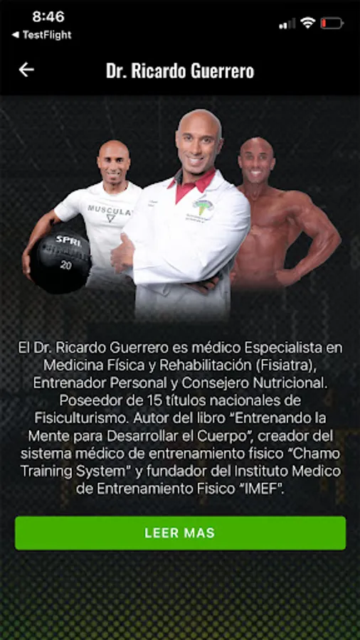 The first exercise application made by a Latin American doctor taking into account the differences between the body genetics of Hispanics, North Americans and Europeans, with a scientific system of intensity progression to avoid injuries.