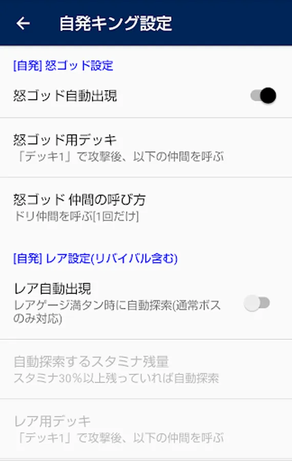 You can set auto-appearance, deck & ally call settings for spontaneous most vicious rare, angry god, rare (revival), and evil.