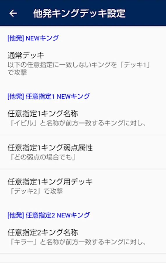 You can specify the deck for automatic subjugation from the king name and weakness.