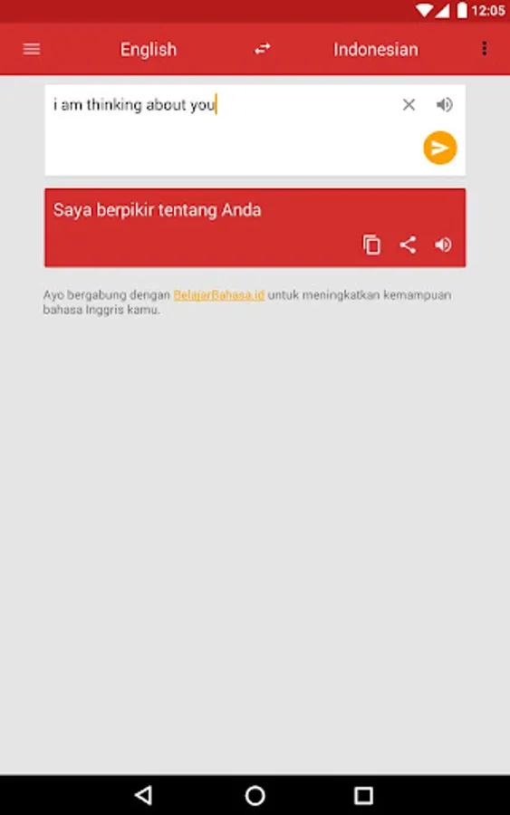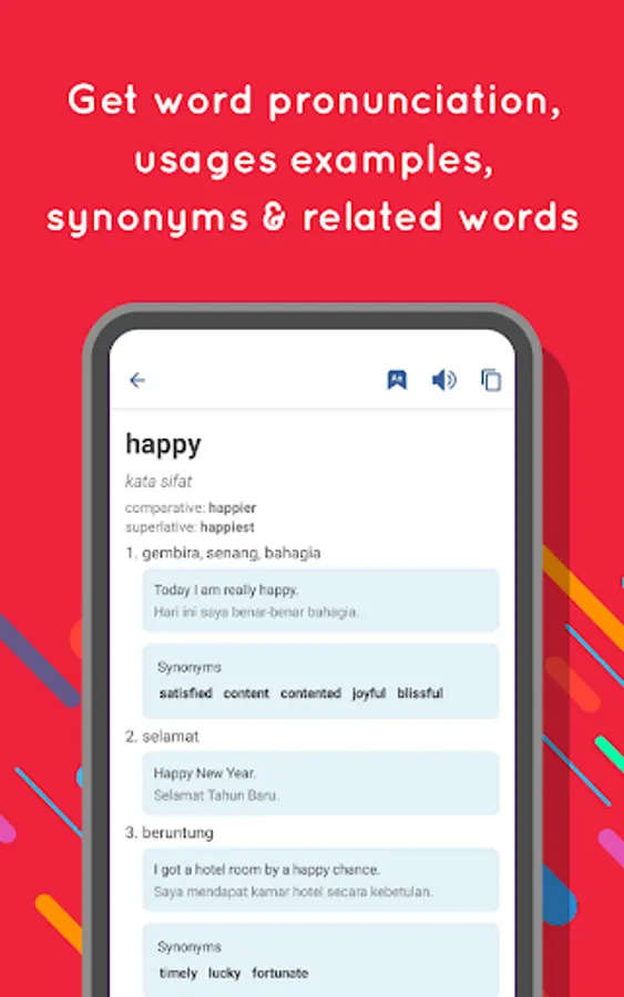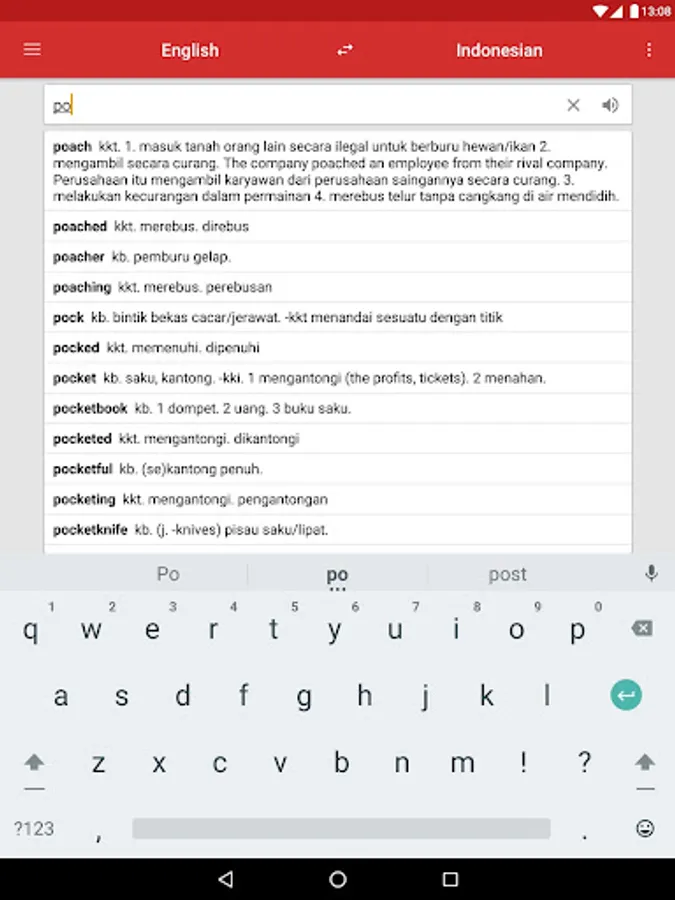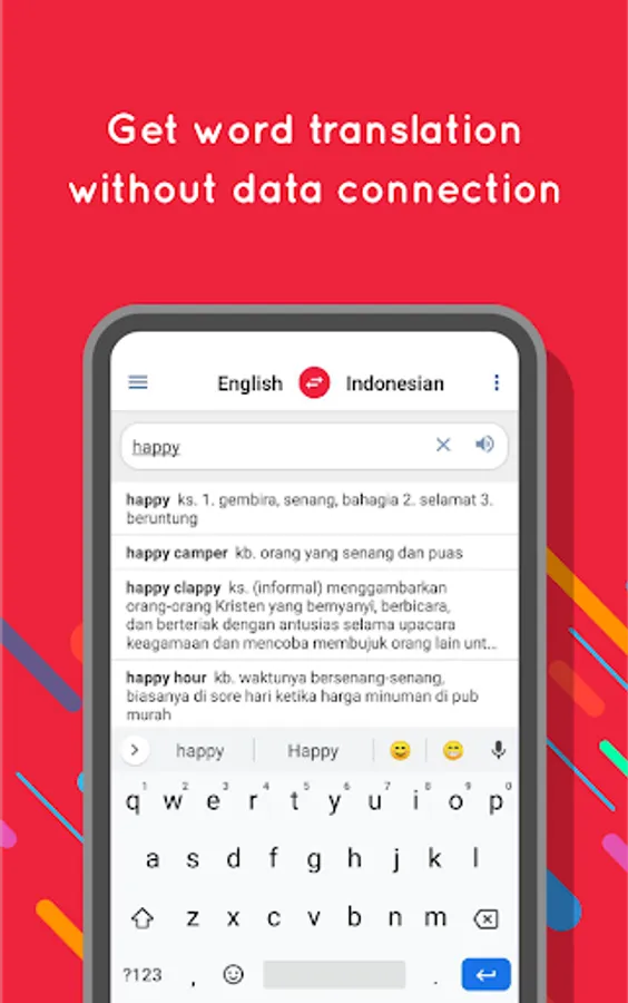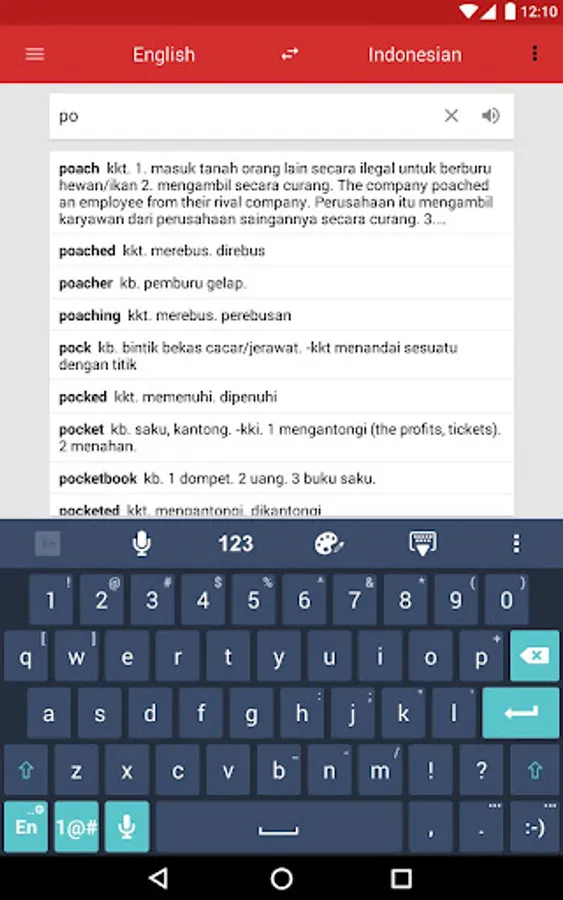 Kamusku is an offline English-Indonesian dictionary and vice versa. It contains almost every popular words and additional not-so-popular words in English and Indonesia so you won't have any problem finding words in this application. In case the word can't be found, you can use online translation service through this application to translate your words.