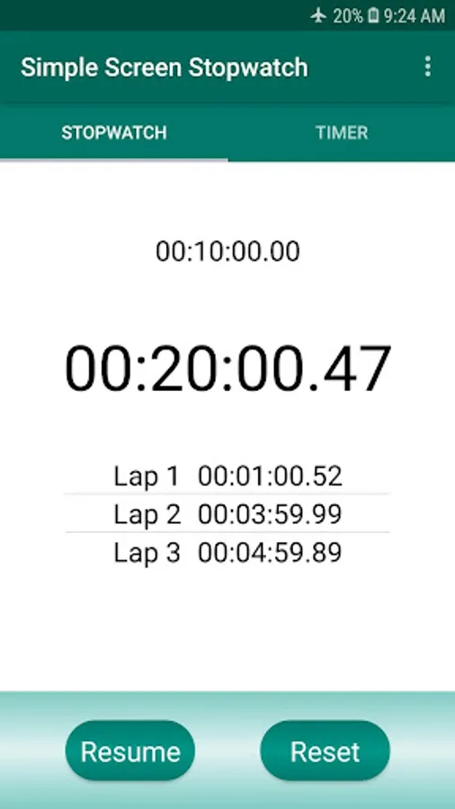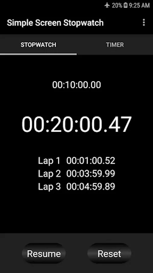 The screen display interface is easy to operate with basic functions, Start, Stop, Pause/Resume, Lap, and Reset. This application will still run when the screen lock is on.