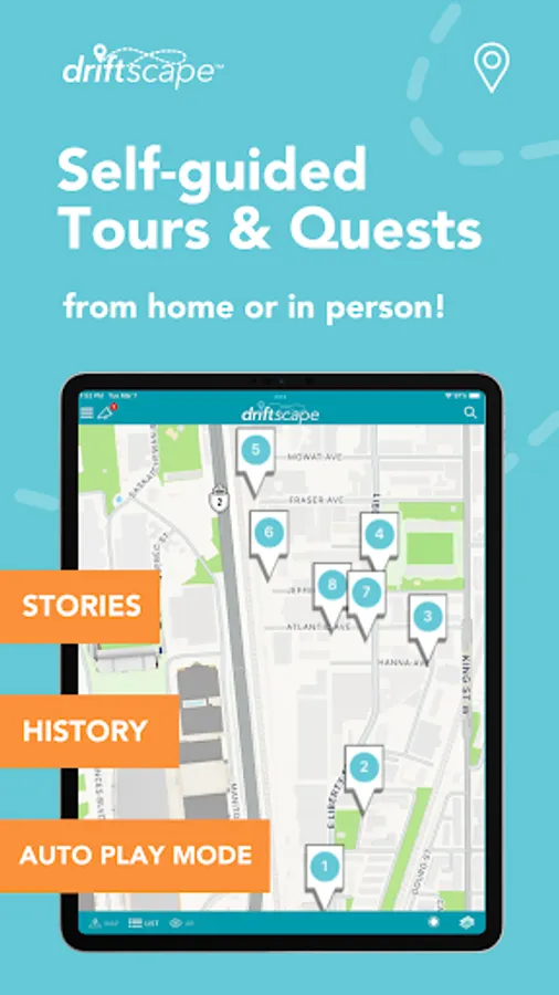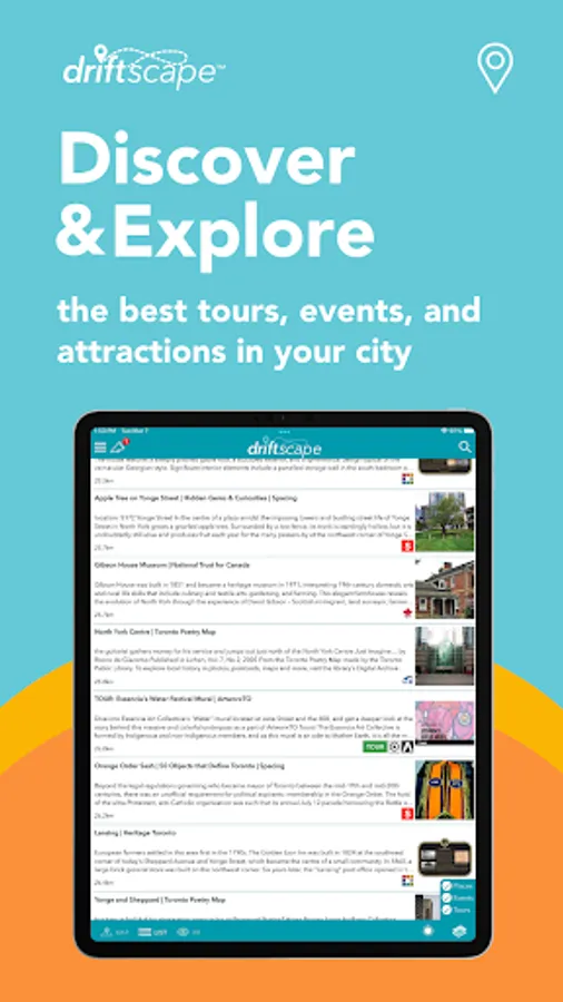 Site-Specific Notifications: Discover hidden gems on the go! No matter where you are, Driftscape can notify you about cool historic landmarks, tours, local businesses and so much more around you.
