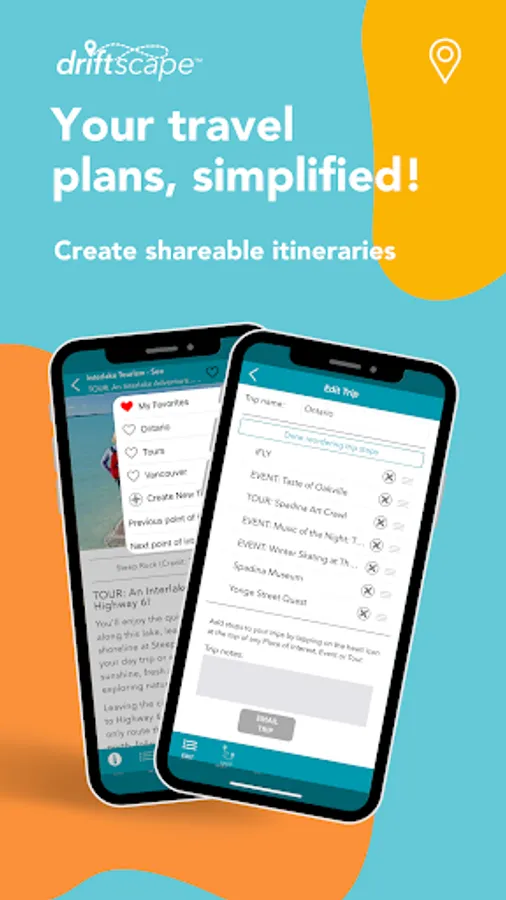 Plan your next outing, discover nearby attractions, restaurants, accommodations, parks, museums, and vacation getaways, all within minutes using Driftscape. It's the ultimate app for travelers and curious locals alike.