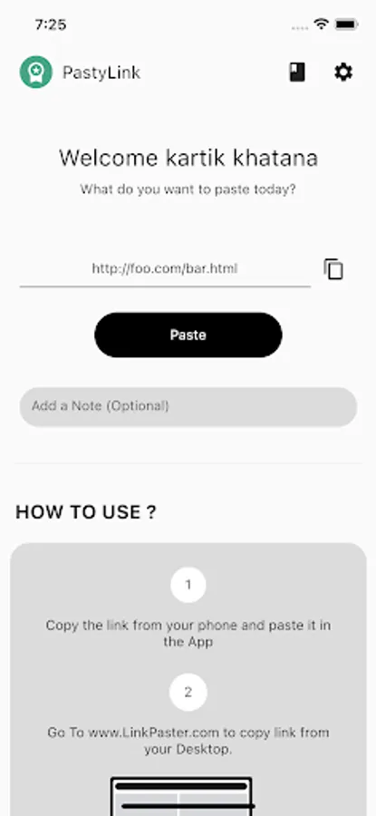 1. Copy your link from your device 1 and paste it in the PastyLink app.