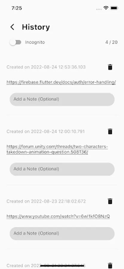 3. Links are auto stored in app history so if you want to reopen a link you can access it through history.
