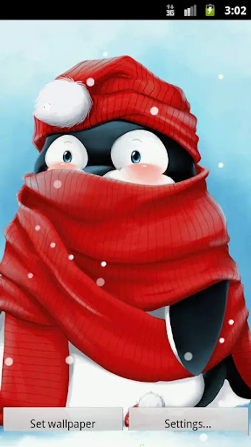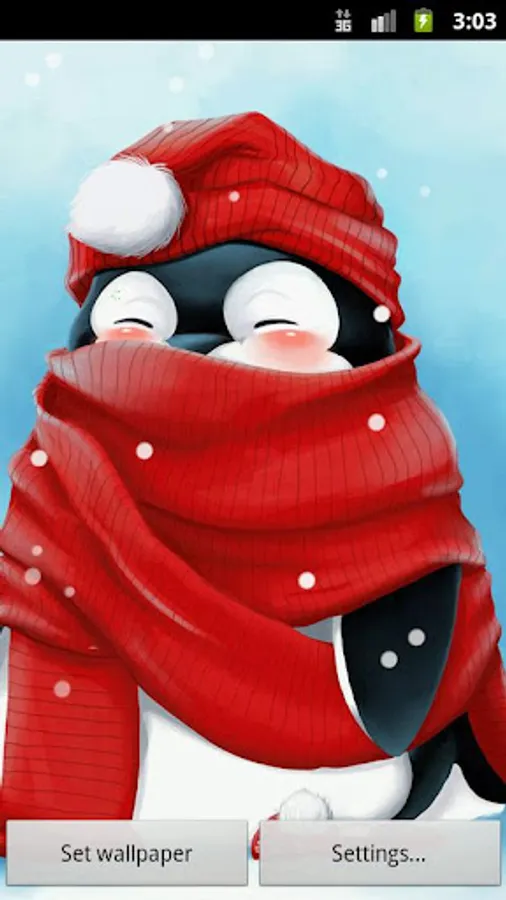 A little penguin keeping warm in the snow. Giving him a pat will cause him to blush.
