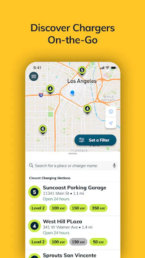 View the map to find an EV charger near you, then check real-time availability, get turn-by-turn directions, and start charging.