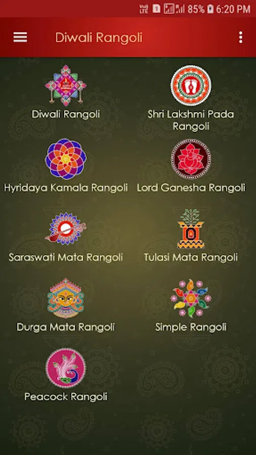 • Diwali Rangoli - The list of different kind of Rangoli(s) used during Diwali festival e.g. Diwali Rangoli, Lakshmi Pada Rangoli, Hridaya Kamala Rangoli, etc.