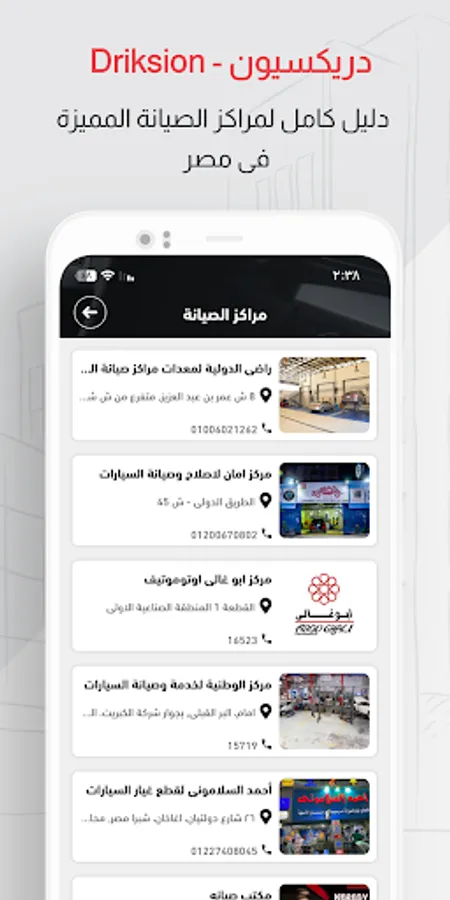 A specialized section for addresses and numbers of car dealerships in Egypt