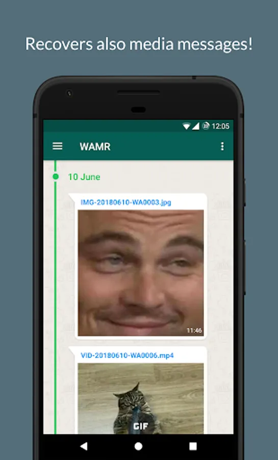 1) Text messages are recovered by your notifications, therefore, if you have put a chat on silence, or if you are currently watching a message on the messaging app before it's deleted you will not receive a notification so WAMR can't save it! This also obviously means that is impossible to recover notifications/messages before you downloaded this app (so download it quickly!).