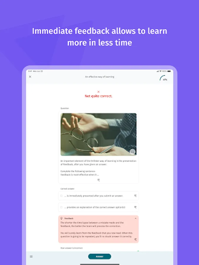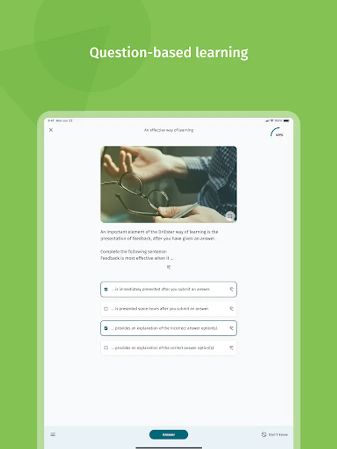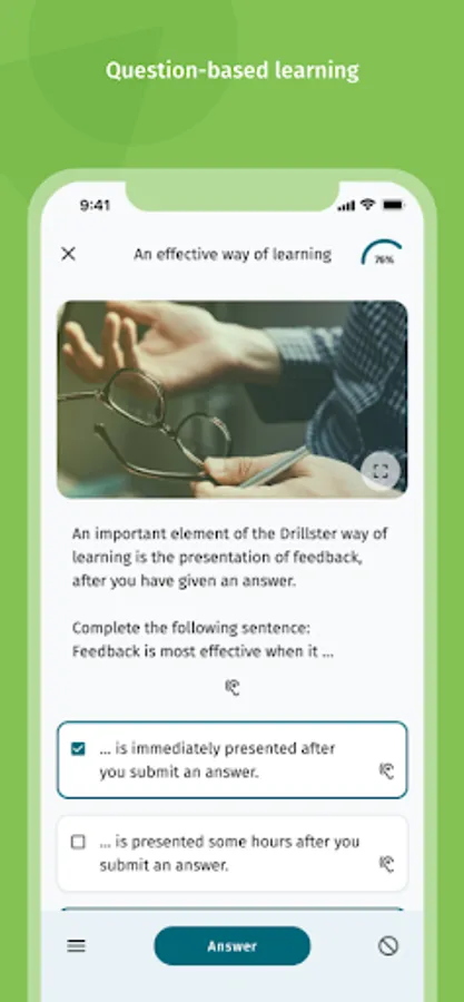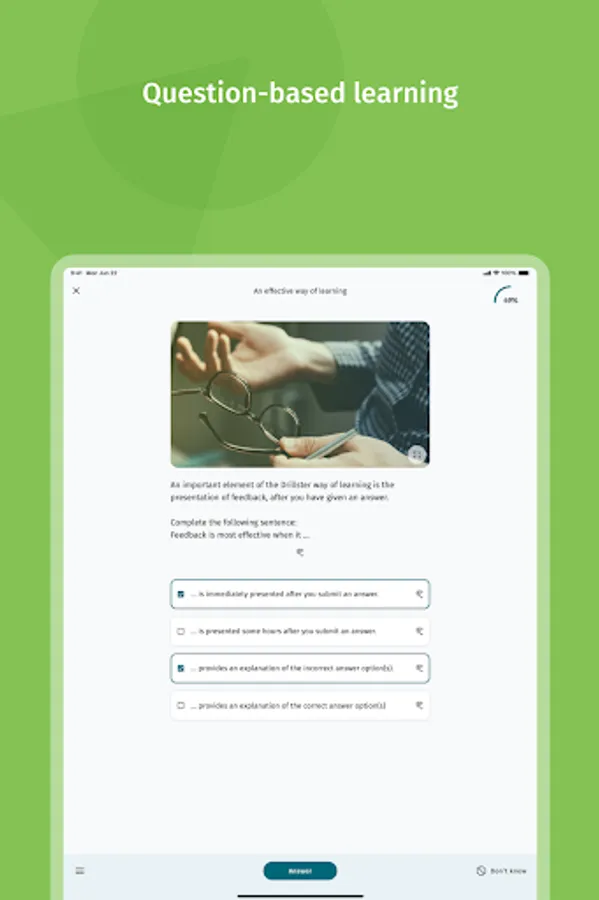 Drillster is the new way of learning, maintaining and anchoring knowledge with technology, science, data and a smart algorithm packaged into one adaptive learning application. Drillster uses innovative learning techniques that lead to 40% faster and at least 10% more effective learning than traditional learning methods. Unique is Drillster’s capacity to calculate how and when knowledge declines if it is not maintained. You receive a notification just before crucial knowledge tends to decline. This way you can brush up on your competencies and ensure that you have the right knowledge and skills at all times.