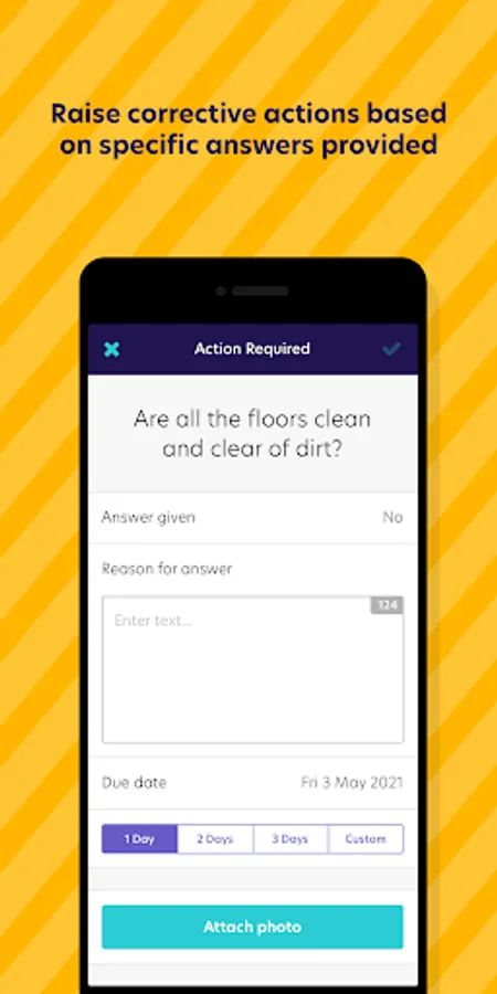· Increase business visibility and manage any necessary corrective actions, with a photo upload feature to track defects